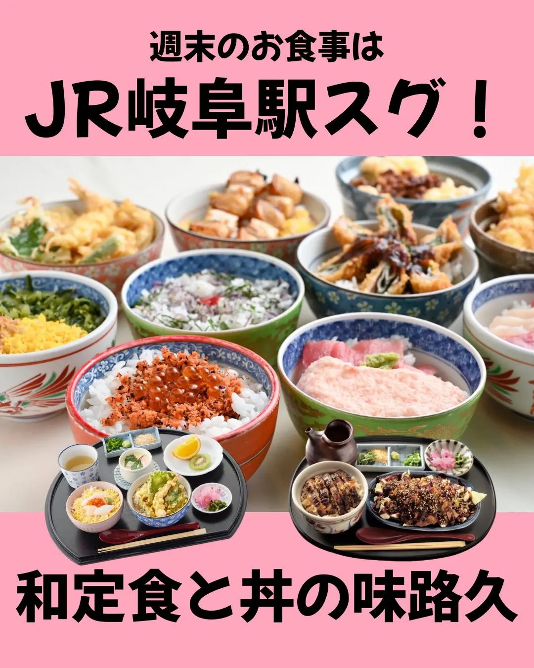JR岐阜駅スグの岐阜シティ・タワー43の2階にて和定食と丼が... JR岐阜駅スグの岐阜シティ・タワー43の2階にて和定食と丼が食べられる味路久です‼️週末のお出かけの際に味路久でお食事はいかがですか❓☺️45種類の小丼に、うなぎまぶし、牛ひつまぶしもご用意しておりま…