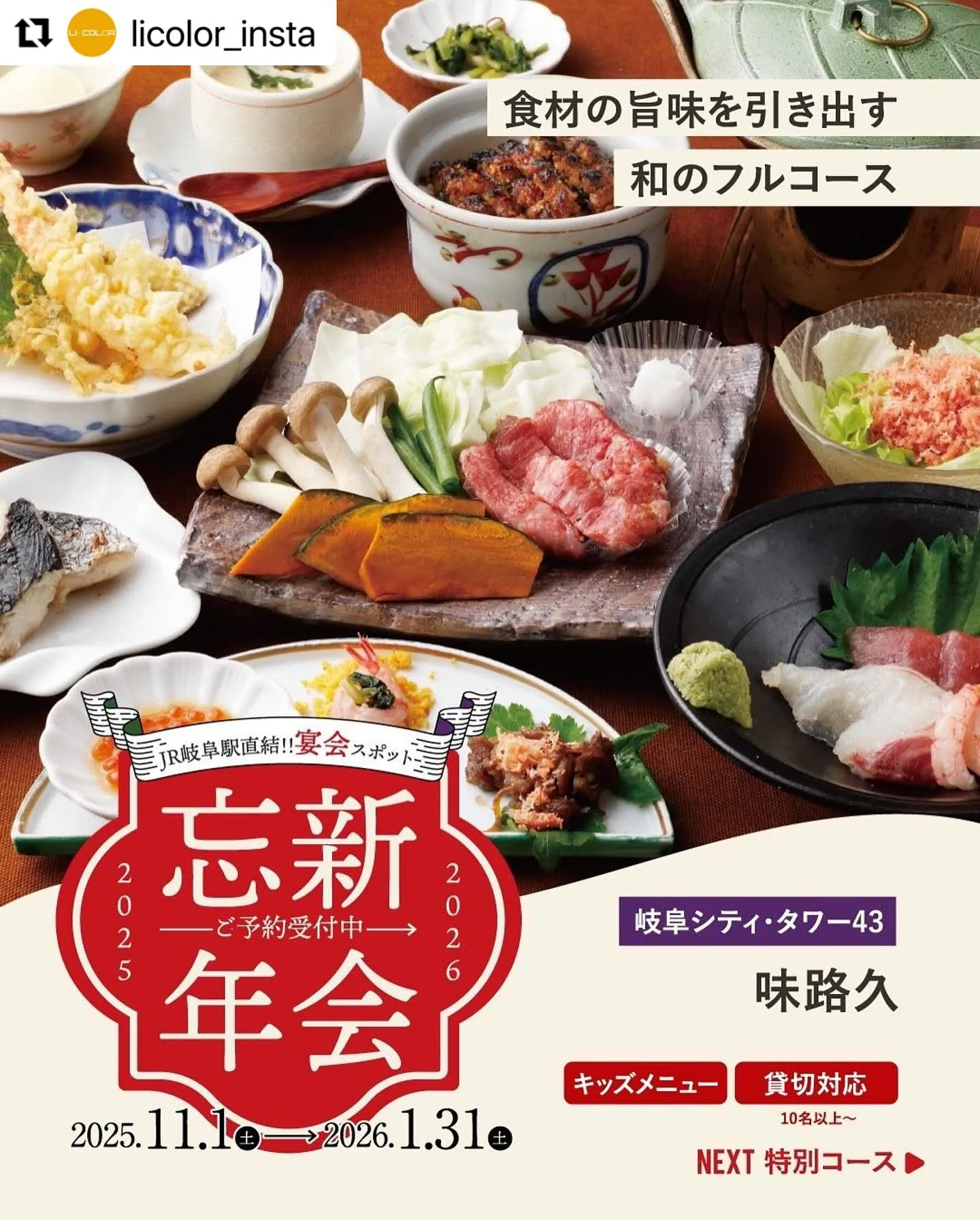 \JR岐阜駅直結で忘・新年会特集/ \JR岐阜駅直結で忘・新年会特集/食材の旨味を引き出す和のフルコース【味路久】@miroku_gifu丁寧な接客と心地よい空間で、上質なひとときをご提供。心のこもったお料理たちは、食材の旨味をふんだんに…