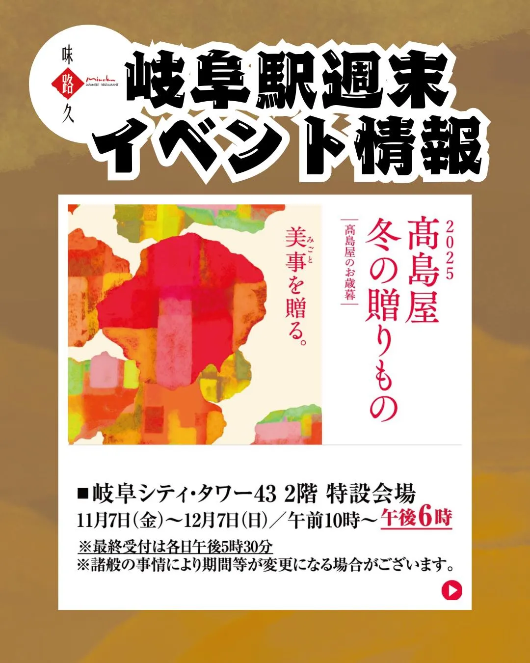 お歳暮の季節がやってきました‼️ お歳暮の季節がやってきました‼️ご準備はシティ・タワー43にお任せください☺️ランチや夜ごはんはぜひ味路久で和定食や丼をお召し上がりくださいね🤗皆様のご来店心よりお待ちしております💕_______…